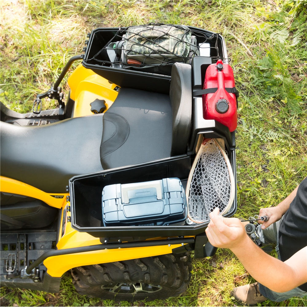 The Nomad trunk box can be customized to meet customer needs. Whether for work, hunting, fishing or just a ride for two in the forest, the Nomad trunk box demonstrates its practicality and convenience aspect for any situation. Also, the trunk box was designed to fit on all existing one-seater ATVs.