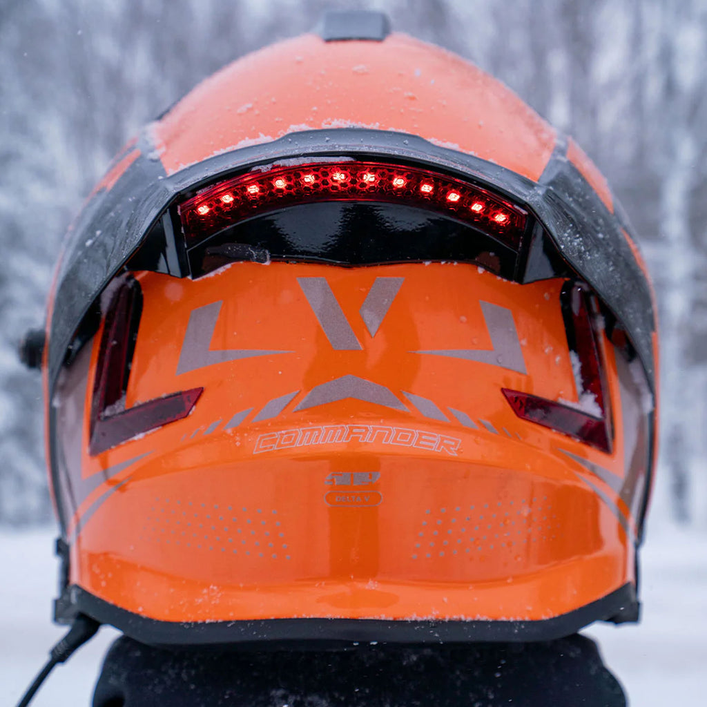 No longer a helmet, now it's a cockpit. Built for long rides, high speeds, and frigid temps, The Delta V Carbon Commander features an integrated communication system, maximum visibility infinity style shield, and lightweight carbon design. Effortlessly communicate between up to 14 riders with a Cardo Communications system complete with JBL speakers, the best sound and noise cancellation for all your rides. Complete with Venturi Vent Ducting, an integrated spoiler, and low-profile antennae keeping this helmet sleek, quite, and fog-free all day on the trails