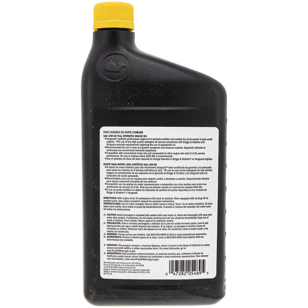 Briggs & Stratton 15W50 Full Synthetic Engine Oil # 100169. The Briggs & Stratton range of oil products gives you everything you need to lubricate your outdoor power equipment petrol engines.