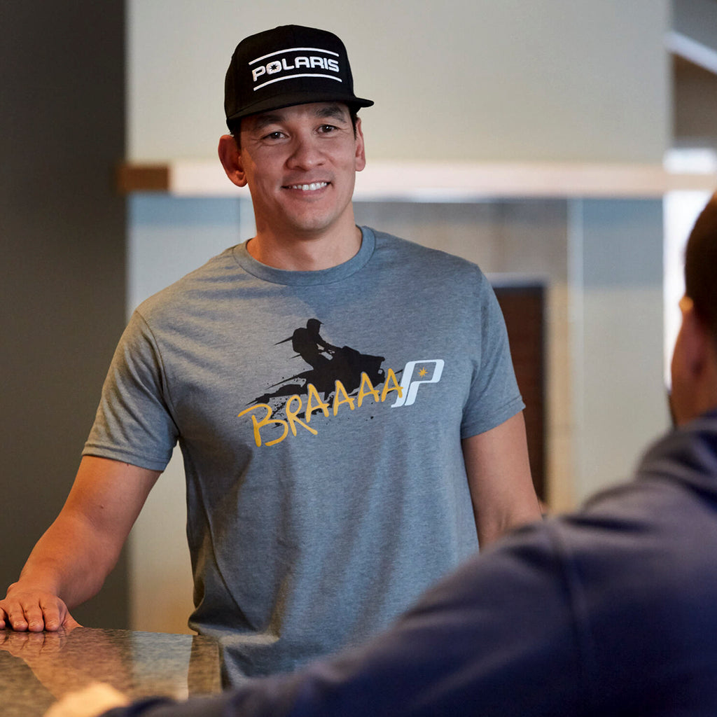 Our mens BRAP tee is the most comfortable way to show off your favorite off-road vehicle. This shirt is a comfortable casual shirt at home on the trail or relaxing with friends. The shirt comes preshrunk to not only preserve the fit, but also ensure the graphics look great for a long time.